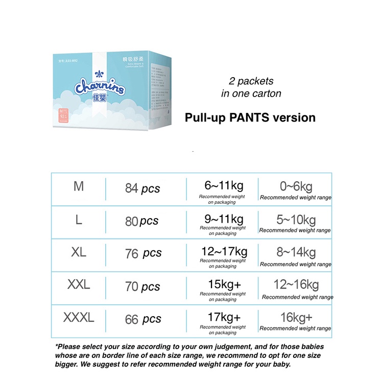 Value For Money:very Performance:great day use Quality:very decent Repeat buy. Like the reviews say, it a great day use diaper with very good absorbency. Been using for a couple of months now. Charnins basic has proven to be a fantastic value for money day use diaper. Poop on a fresh diaper and no pain to the wallet ? It’s definitely comfortable for our baby as well. Doesn’t feel cheap. Go China! ??