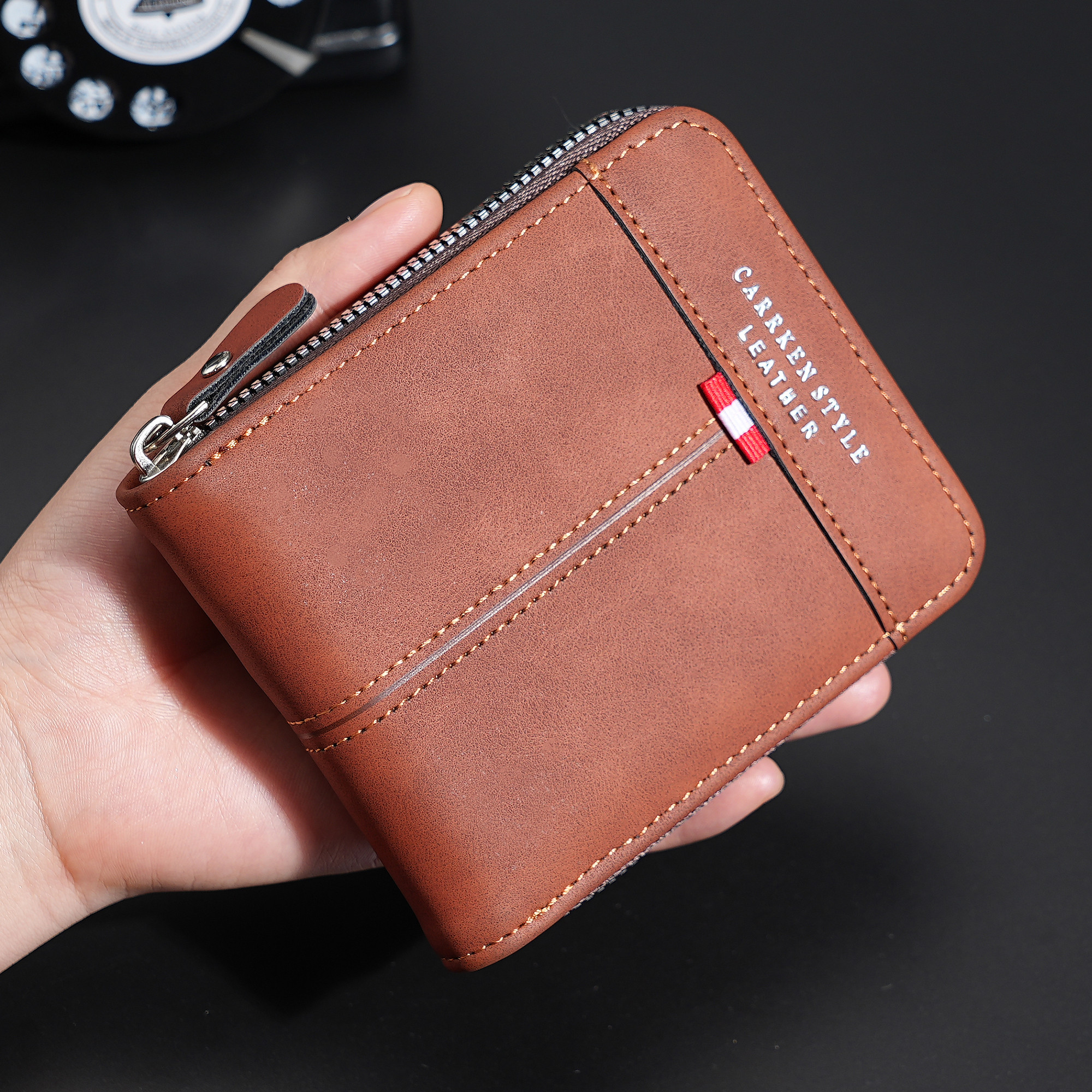 Men New Style Leather Zipper Short Wallet Multifunctional Coin Purse Multi-card ID Bag Card Holder
