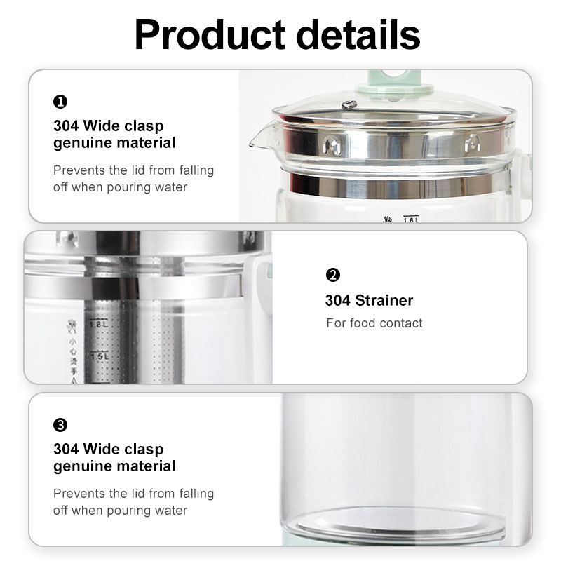 【READY STOCK】Electric Health pot Teapot 1.8L Multi-function Electric Kettle Thick Glass Kettle Thermos 3-pin Plug 養生壺 迷你