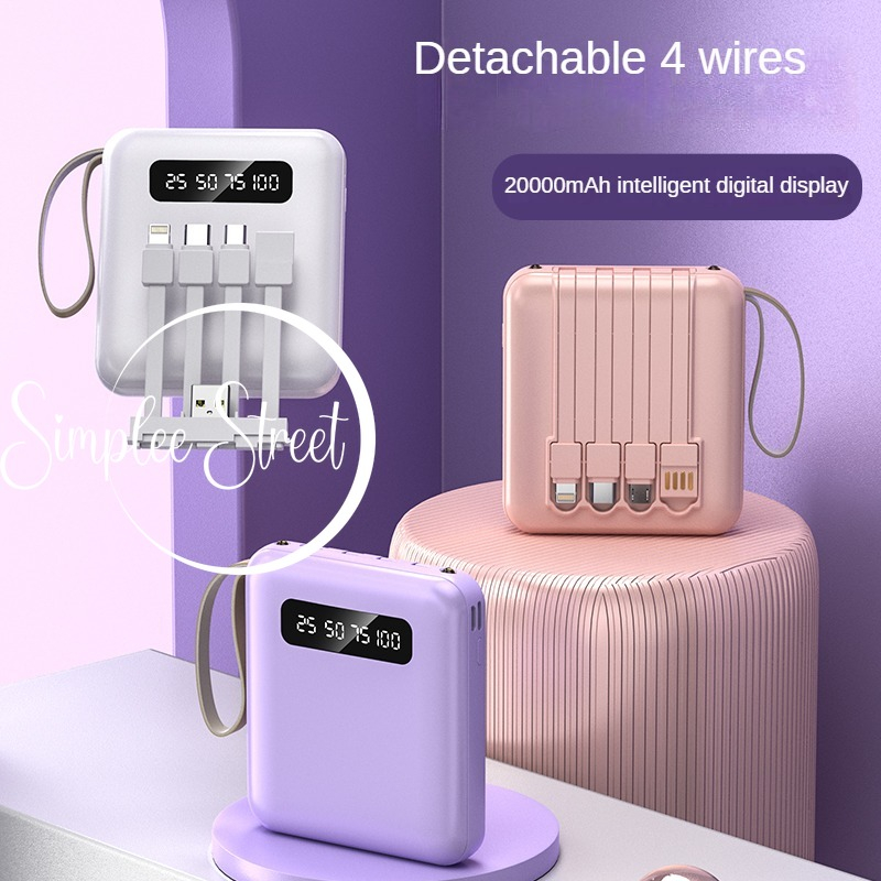 【SG Local Stock】20000mAh Power Bank Portable With 4 Wires LED Flashlight
